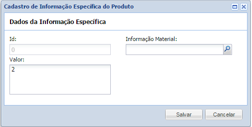 - Informação Material: Escolher uma informação que está associada ao produto x depositante.