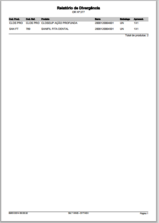 Se ainda houver divergência de contagens, exibirá relatório semelhante ao informado abaixo.