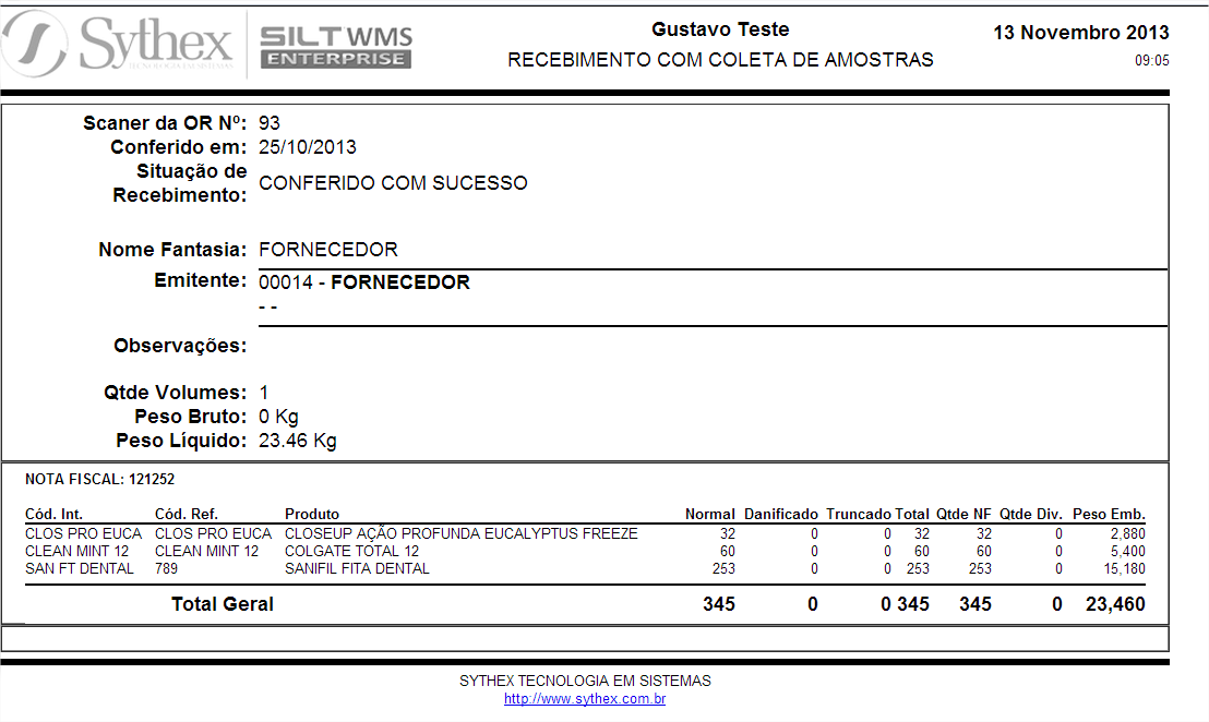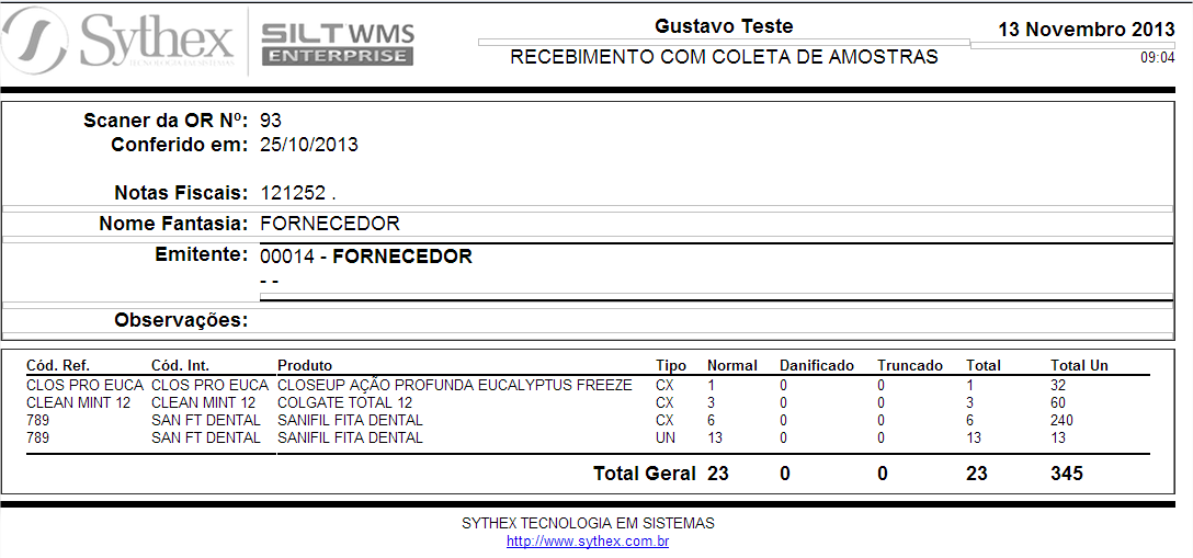 A partir da versão 8.8.4.0, se caso no cadastro do Depositante da OR no sub menu: Recebimento > o parâmetro Modelo Relatório Resumo Web, estiver setado para Com Lote Indústria: será impresso o modelo de relatório abaixo, exibindo abaixo dos dados do produto os lotes indústrias que foram conferidos: