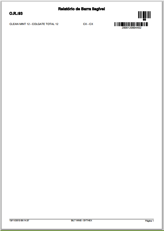 Exibirá no relatório os produtos que tiverem no Cadastro de Embalagem / menu Informações Adicionais / desabilitado o parâmetro “Código de Barras Legível” .