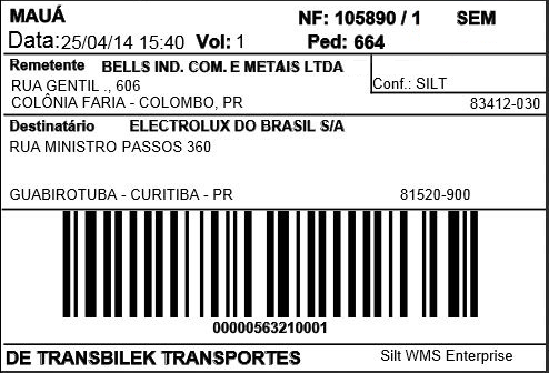 Se a classificação da Ordem de Recebimento for do tipo Cross Docking será possível imprimir a etiqueta abaixo informada.