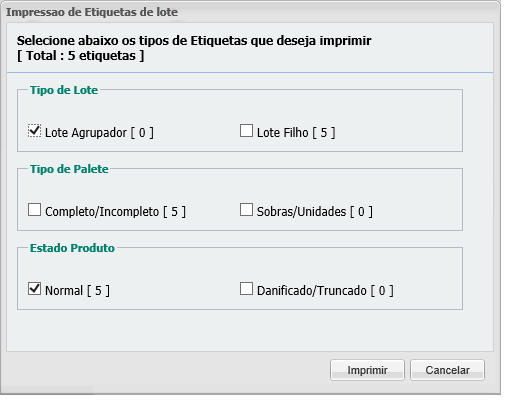 Botão: Impressão de Etiquetas de Lotes > Imprimir