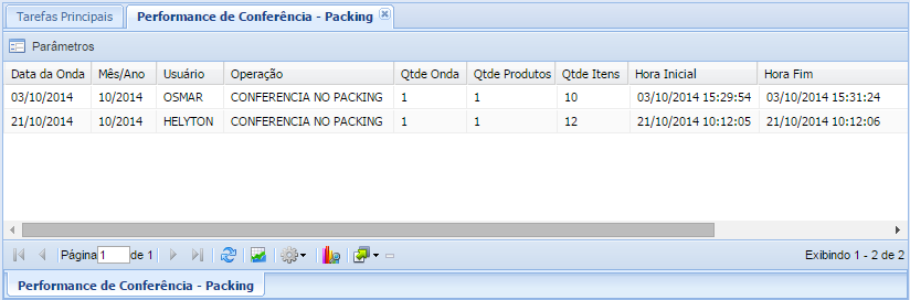 Serão exibidos quantidade de onda, produtos e de itens conferidos por usuário, numa determinada data, serão apresentado de forma sintética.