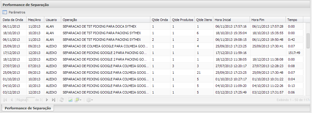 Serão exibidos quantidade de onda, produtos e de itens separados por usuário, numa determinada data.