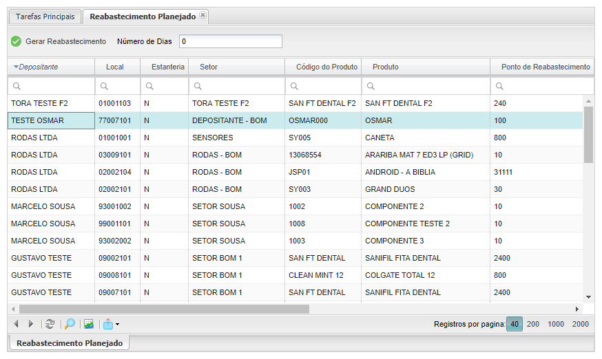 Menu: Movimentação > Remanejamento > Reabastecimento Planejado
