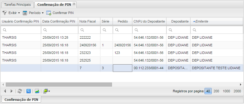 Mostrará os filtros da coluna “Status Confirmação PIN“ que exibirá os registros: