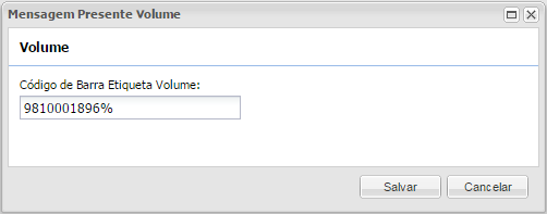 - No grid carregará os dados após identificar o volume que estiver ativo, pertencer ao fluxo de Ordem de Separação, e também a mesma deverá ser de “presente” (campo isGift verdadeiro. Para tanto, ao clicar no botão “Identificar Volume”, o sistema solicitará o Código de Barra do Volume.