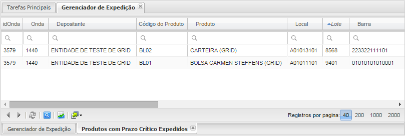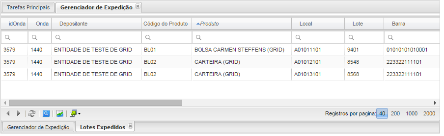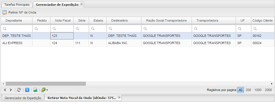 No grid serão apresentados todos os produtos das notas fiscais / pedidos que foram associados na Onda.