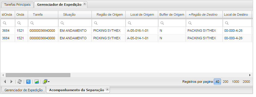 Será possível visualizar as separações dos locais e produtos na Onda.