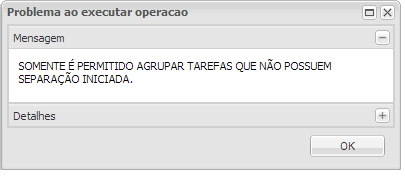 Não será permitido agrupar as tarefas se a separação foi iniciada.