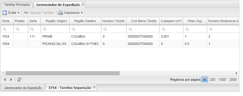 Caso contrário será permitido unificar o “Cód Barra Tarefa” do mesmo Pedido / Nota Fiscal de dois ou mais registros.