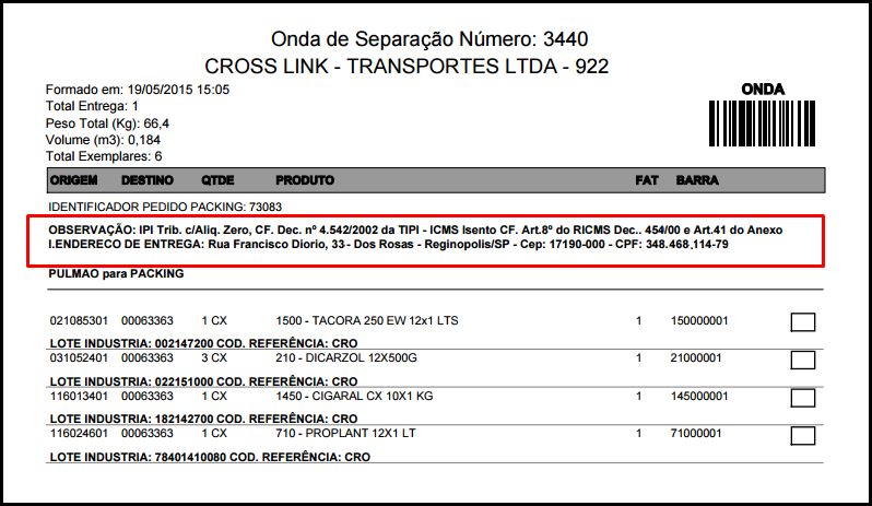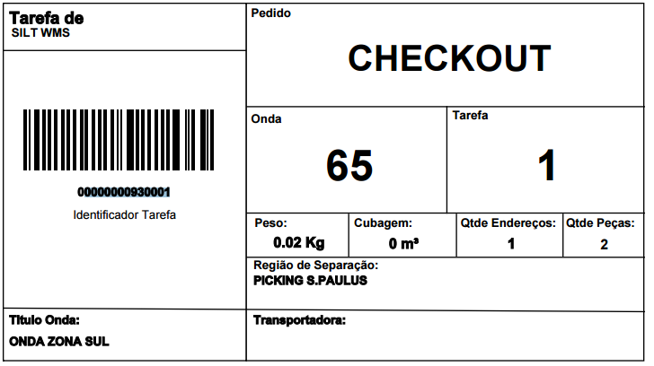 A começar da versão 7.6.0.0, quando o Fluxo da Onda for por Checkout Express será impresso o modelo abaixo informado, e não será solicitado região de impressão.