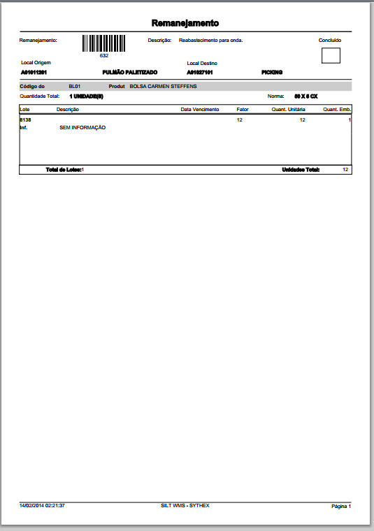 - Ao formar uma onda, quando o estoque envolvido necessita de um reabastecimento, o sistema usa remanejamento para tal operação. Hoje, todo remanejamento criado para atender a formação de onda é gravado. No entanto, quando existe um remanejamento movendo o mesmo estoque que a onda, o sistema aproveita o remanejamento aberto e aumenta a quantidade do lote reservado, sem adicionar a associação do remanejamento com a onda, com isso foi realizado a alteração no sistema que garante que todo remanejamento criado atenda uma onda, isto é, que tenha o relacionamento correto entre remanejamento e onda.
