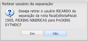 Alterar Usuário da Separação / Por Nota Fiscal / Retirar Usuário
