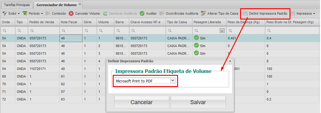- Somente imprimirá a DANFE caso a configuração da onda permita emitir DANFE para todos os volumes.