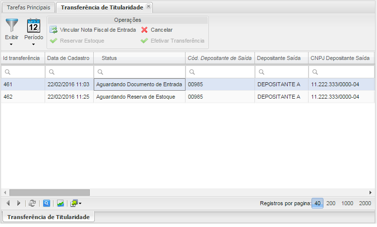 OBS: O Destinatário da Nota de Saída tem que ser o Depositante da Nota de Entrada (CNPJ/CPF).