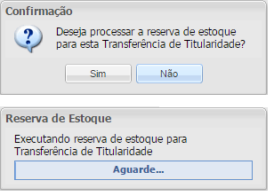 - Caso a transferência de titularidade estiver com status “Aguardando Reserva de Estoque (1)” serão realizadas as seguintes ações: