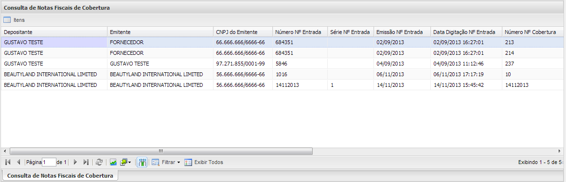 Menu: Nota Fiscal / Armazém Geral / Consulta de Notas Fiscais de Cobertura