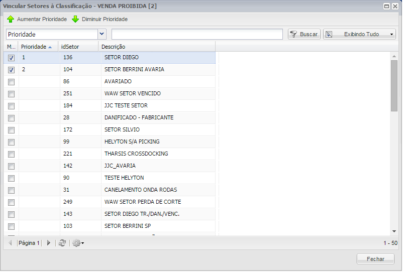 - Aumentar Prioridade: Aumenta a prioridade do setor selecionado para um valor acima e diminui a prioridade do setor que ocupa o valor pretendido.