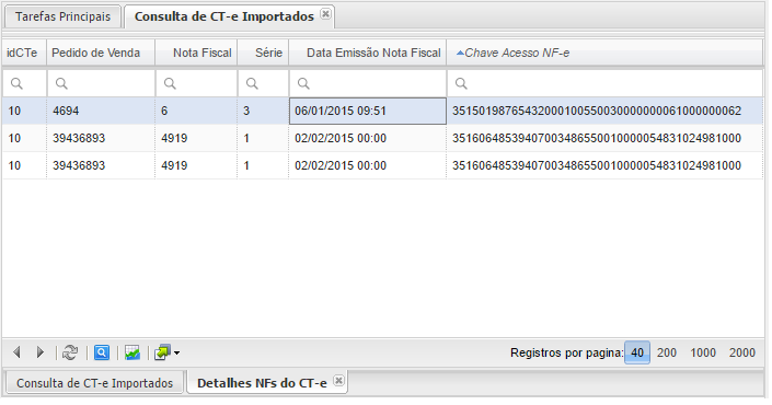 Menu: Nota Fiscal / Consulta de CT-e Importados