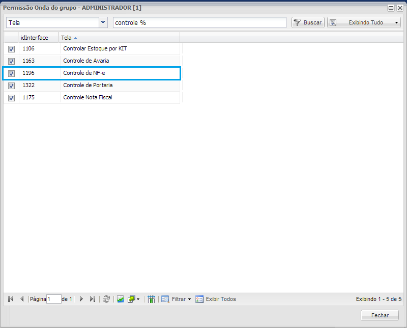 Atribuir direito ao menu Controle de NF-e para que o usuário tenha acesso as atividades de Nota Fiscal Eletrônica.