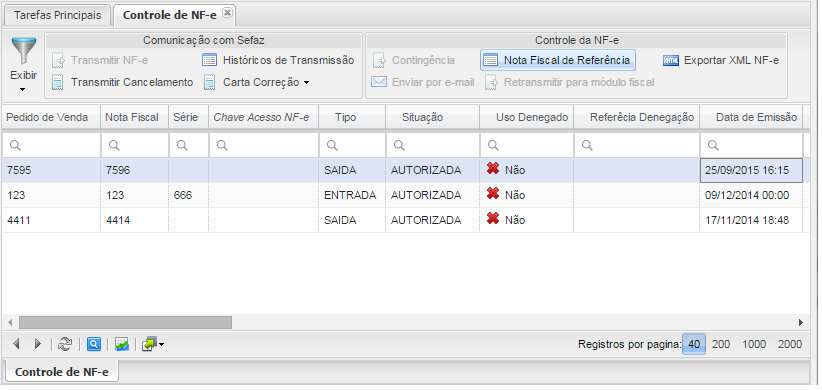 Menu: Nota Fiscal / NF-e / Controle de NF-e