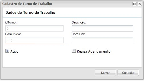 No cadastro de turnos localizado no menu Gestão de Contrato / Turno de Trabalho, foi adicionado o parâmetro Realiza Agendamento que define se será permitido ou não realizar agendamento neste turno.
