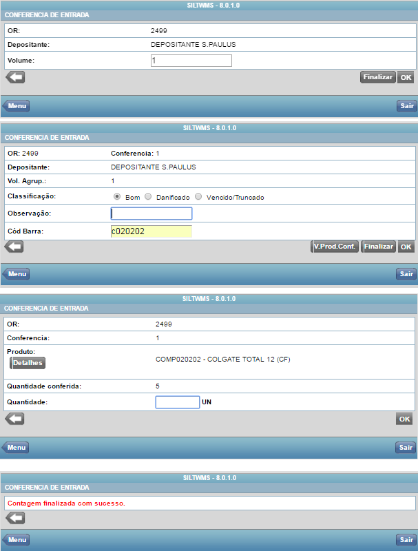 - A próxima parte solicitará diretamente a quantidade, em função do remanejamento e do produto terem sido localizados. A quantidade será informada. Não será aceito quantidade diferente da solicitada.
