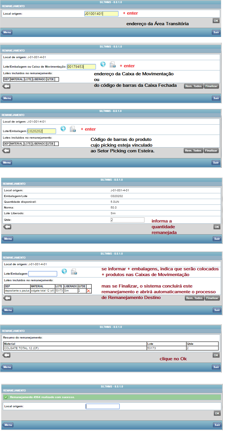OBS: Se existir um produto com mais de um local de picking, o sistema SEMPRE contemplará o primeiro local de picking cadastrado para o produto que foi remanejado.