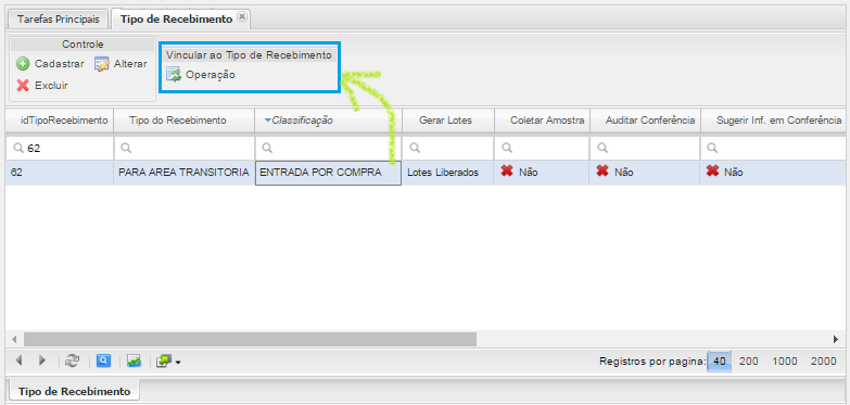 Local: Aplicativo SILTWMS / Cadastro / Entrada / Tipo de Recebimento.