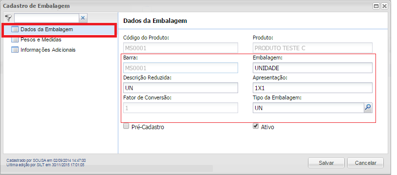 Cadastro de Produtos e Embalagens