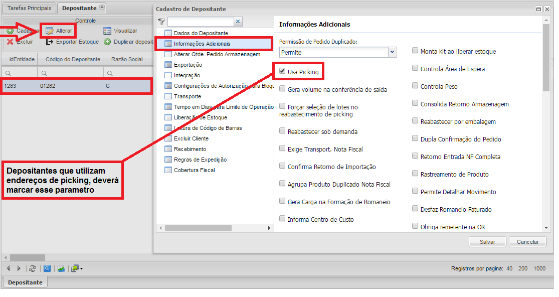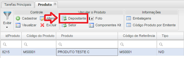- Botão Depositante: Vinculará ao produto particularidades do Depositante que será selecionado.