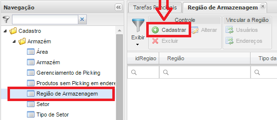 Cadastro de Região de Armazenagem