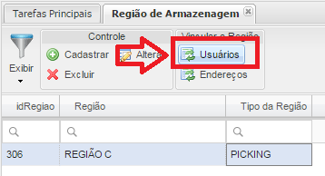 - Botão Usuários: Vinculará os usuários a Região de Armazenagem, somente se precisar restringir o acesso do Local ao usuário cadastrado.