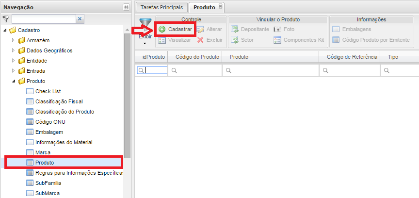 Menu Cadastro / Produto / Produto, clicar no botão Cadastrar.