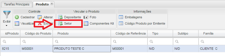 - Botão Setor: Vinculará Setor ao Produto.