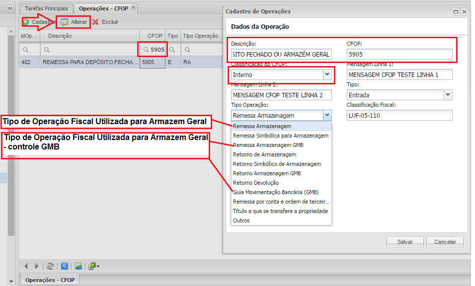 Configuração Operações Fiscais (CFOP) – Armazém Geral