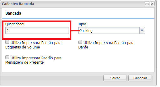 - No campo Quantidade: Informar a quantidade de Bancadas existentes no Armazém.