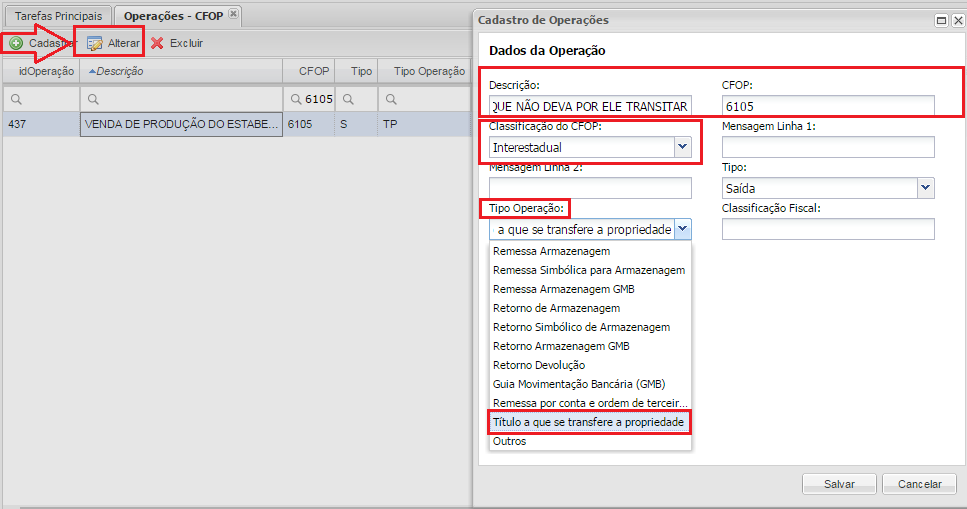 Menu: Cadastro / Operações – CFOP