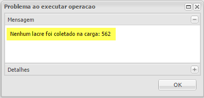 Caso uma coleta que esteja em um armazém parametrizado para "Coleta de lacre ao finalizar coleta".
