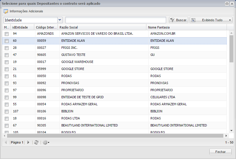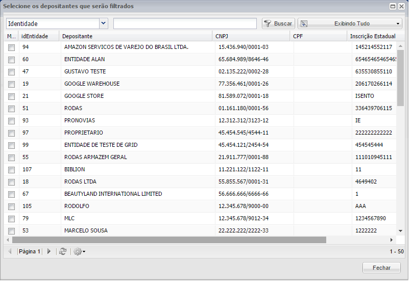 Esta tela foi derivada da consulta de “Estoque Sintético Por Depositante” onde foram acrescentados as colunas Entidade de Cobrança, Número do Contrato e CNPJ da Entidade de Cobrança e Inscrição Estadual Entidade de Cobrança.