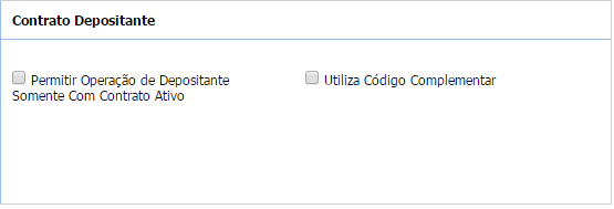 Campo Permitir Operação de Depositante Somente Com Contrato Ativo: Poderá ser alterada a qualquer momento, e terá a gravação de Log de Segurança quando isto ocorrer. Interferirá nas funcionalidades: