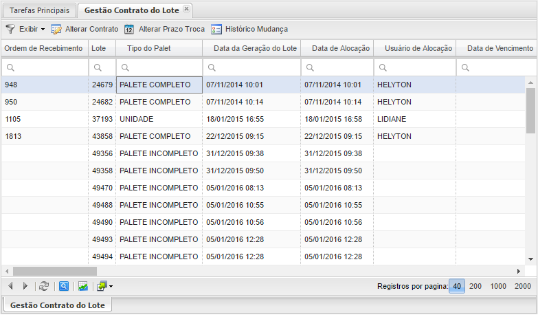Após realizadas as Configurações do Contrato, e executar operações de entrada dos produtos, cada uma das notas fiscais terão uma configuração de contrato. Esta informação dará suporte para a geração de lotes no recebimento. Os lotes serão criados e atrelados ao contrato definido em Nota Fiscal. Caso a nota fiscal não tenha esta informação, o contrato que será utilizada será recuperado a partir da configuração do depositante (contrato padrão).