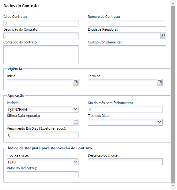 Gerenciador de Contrato / Sub Menu: Dados do Contrato