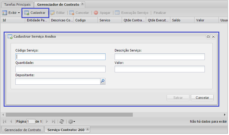 Gerenciador de Contrato / Botão: Serviço Avulso