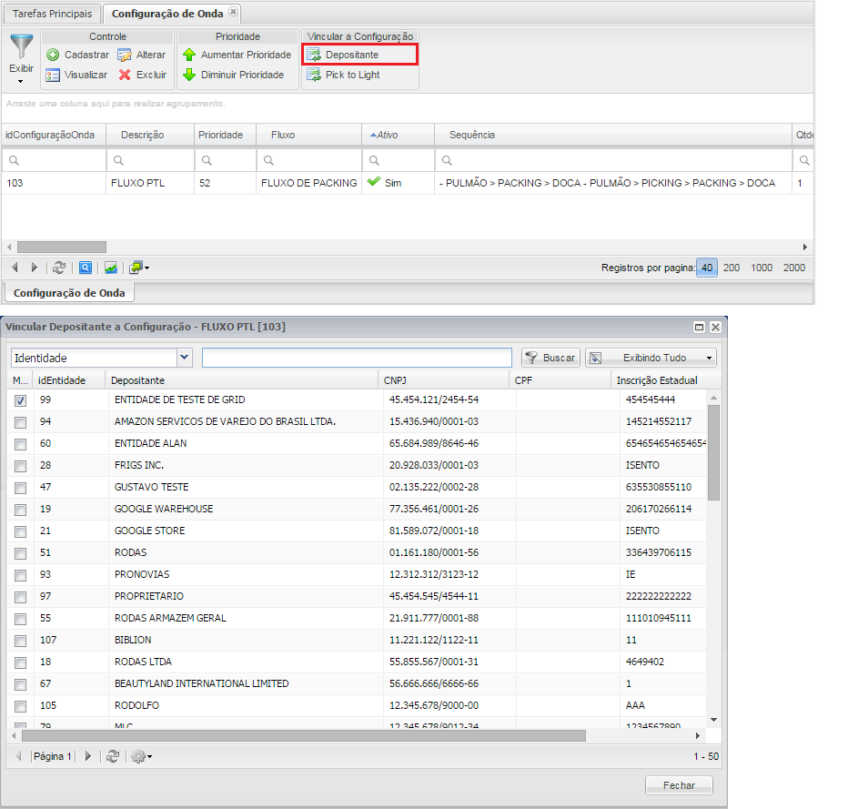 - Caso a Nota não seja visualizada na Formação da Onda, verifique o Cadastro do Depositante: