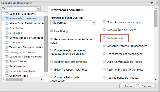 - O parâmetro “Controla Peso” não pode estar marcado.