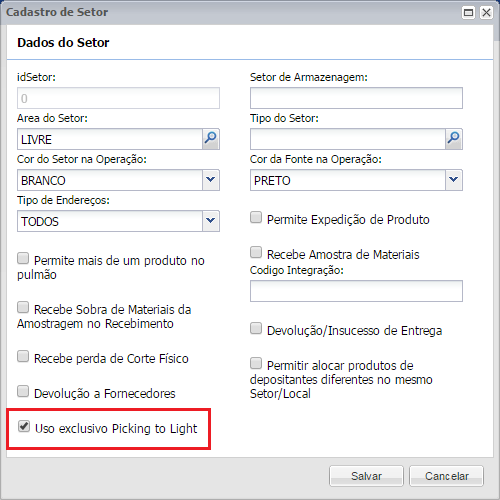 - Validações que o sistema aplicará quando a opção ‘Uso exclusivo Pick to Light’ estiver habilitado.