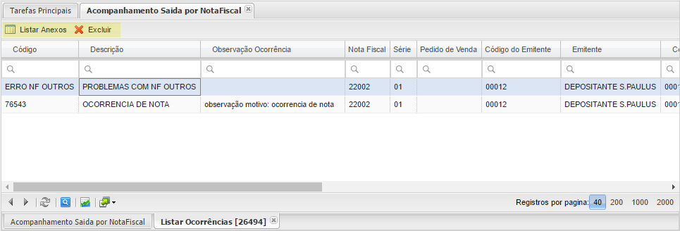 Será possível visualizar uma ou mais ocorrências de uma nota fiscal de saída.