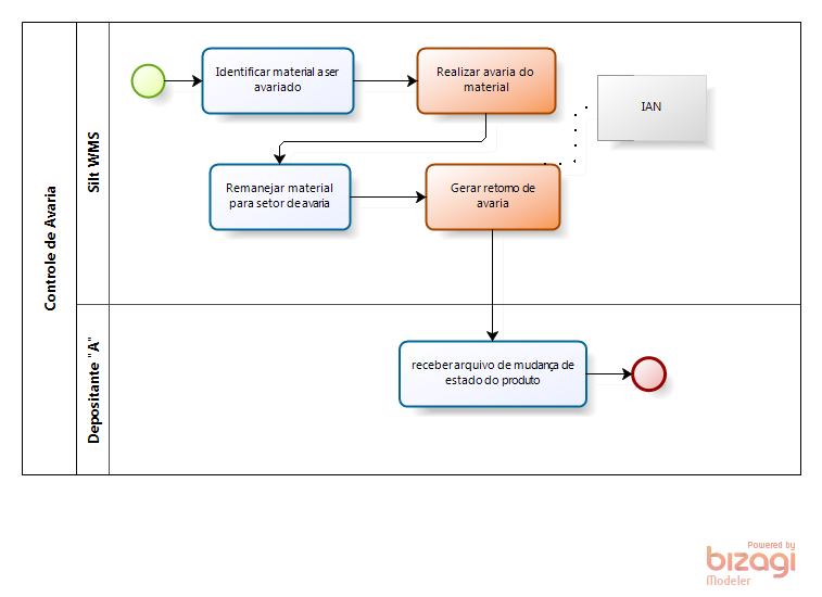 Ajuste de Estoque por Controle de Avaria, ao realizar o cadastro de avaria do material, o sistema gera atividade de remanejamento do material para o setor de avaria, ao finalizar a avaria, o sistema gera arquivo IAN no diretório Exportação que será avaliado pelo ERP.